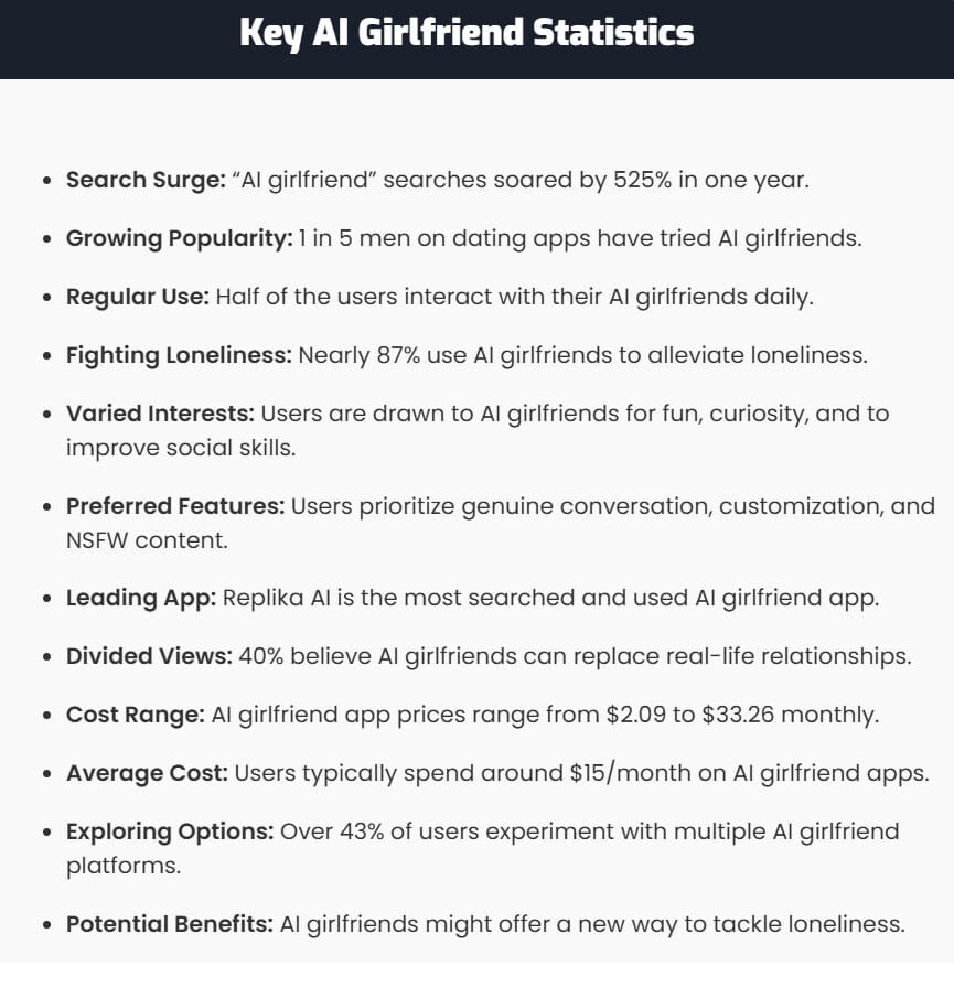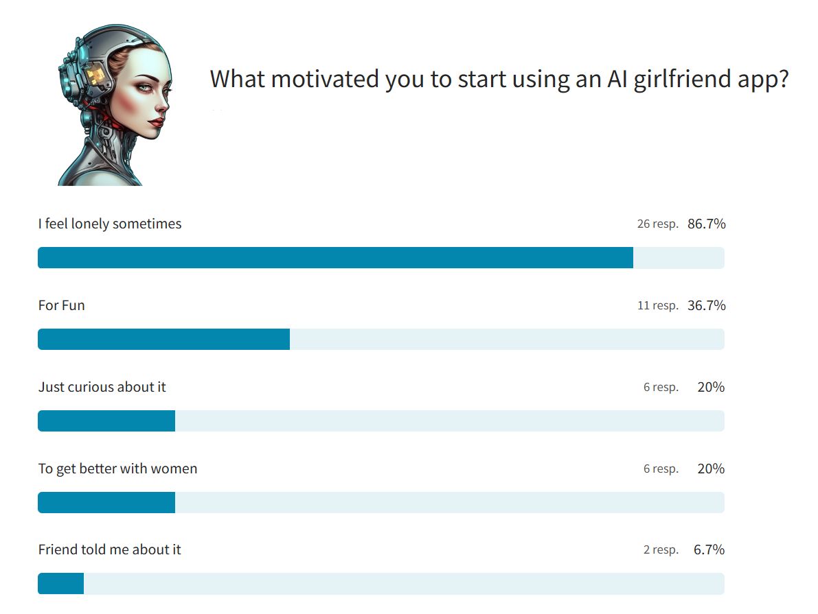 Most users cite loneliness or being misunderstood as the primary reason for pursuing an AI-backed relationship.