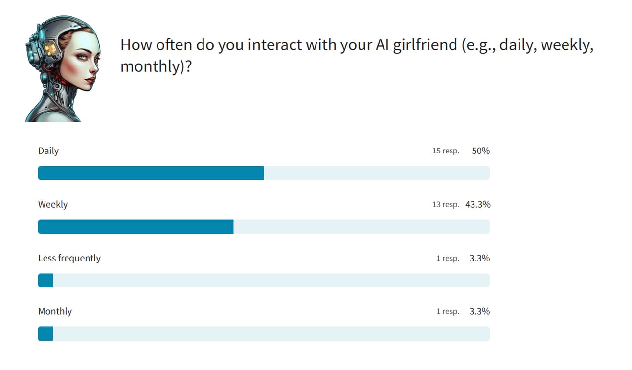 Most users interact with their AI partners on a daily or weekly basis.