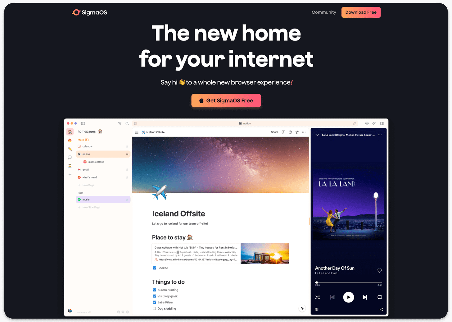 SigmaOS feels like Notion, Chrome, and ChatGPT combined, enabling queries such as: “Turn these eight open tabs into a project plan with tasks, deadlines, and draft content.”