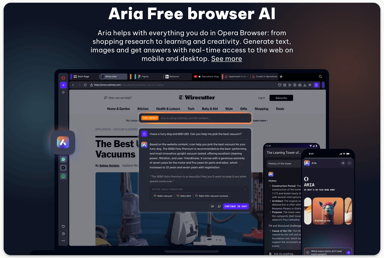 Aria is Opera's attempt to rethink browser UX from first principles. It can summarize articles, rewrite content, find sources, automatically manipulate tabs, and reorganize the browsing workspace.