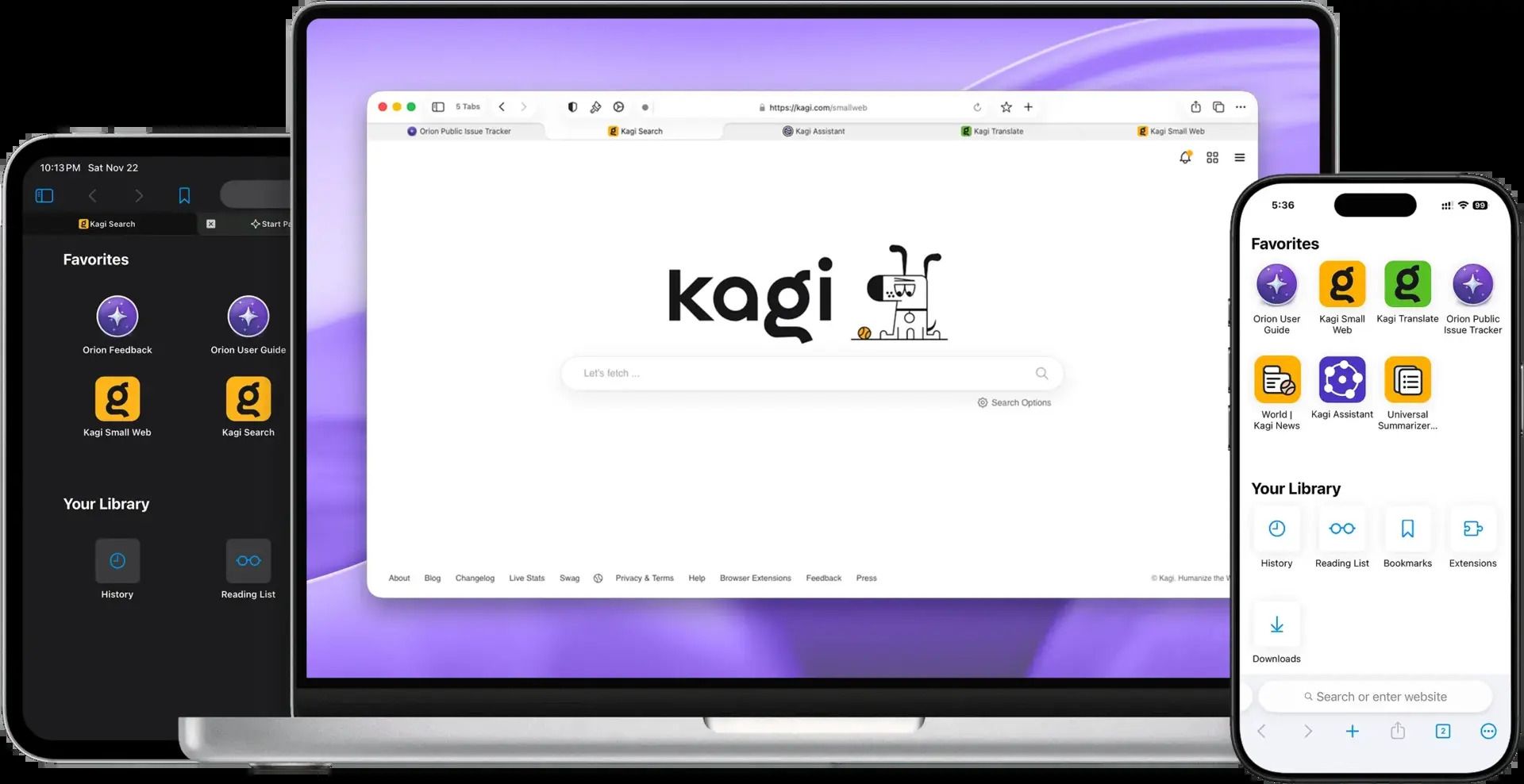 Orion pairs a lightweight browser with Kagi, a paid, privacy-focused search engine. This niche but influential segment is designed for users willing to pay for “no ads, no noise, high-quality answers.”