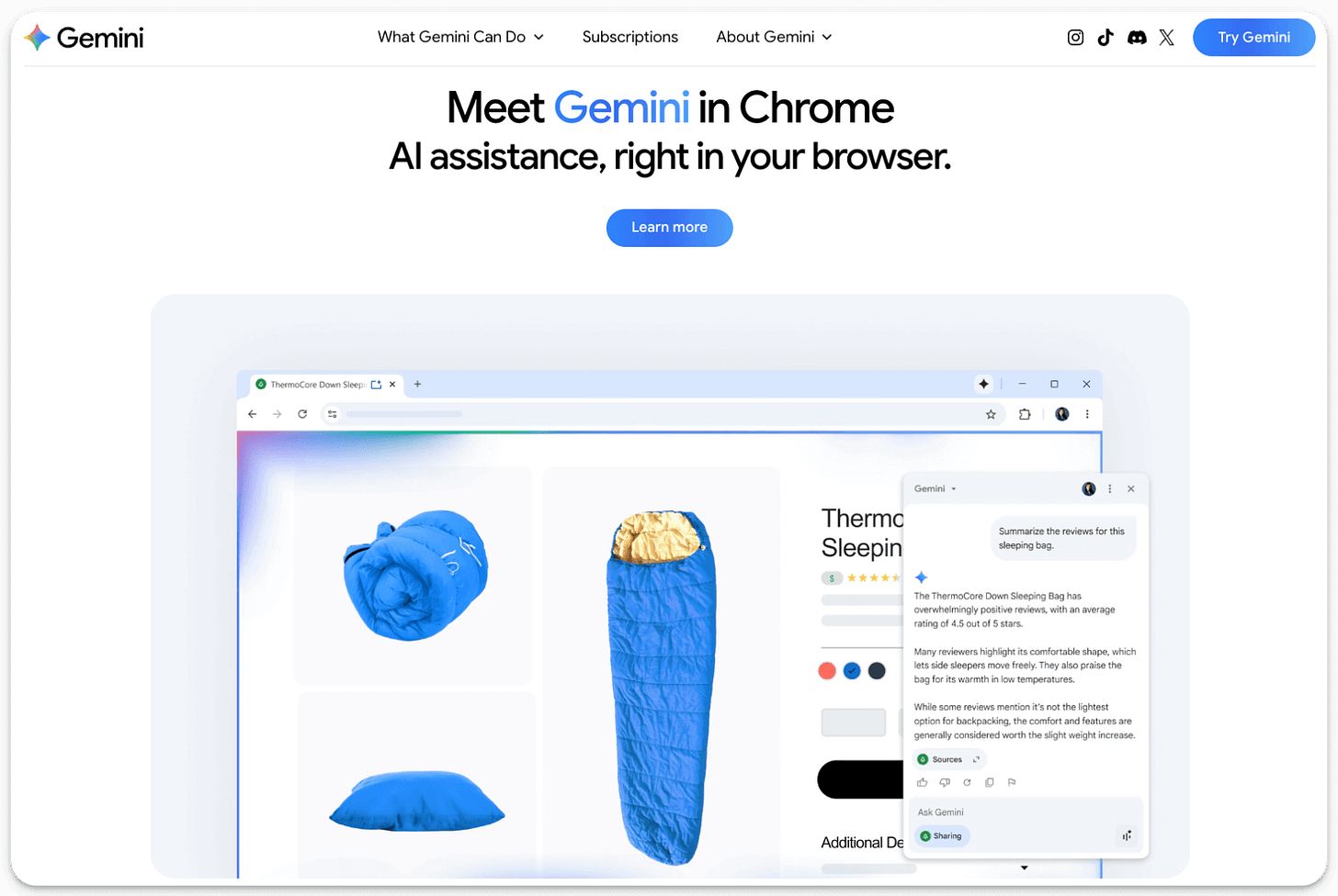 Chrome's main advantage is its distribution: AI is layered directly onto existing browsing behavior, giving users seamless access within a familiar experience.